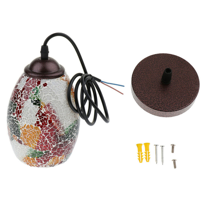 ITEM NAME:E27 Retro Bar Cafe Restaurant Pendant Light Shade Mosaic Style Ceiling Lamp Description: 100% brand new and high quality Good for ceiling decoration, bulb shade, lamp shade, etc It comes with cable. Applicable Lamp Holder: E27, suitable for energy-saving lamps, incandescent bulbs, LED bulbs Suitable for displaying in inn, coffee shop, bar desk, restaurant, terrace, aisle, home, and so on. Give your room a classy touch with this Retro Vintage style lampshade Material: Glass, Masek, Hardware, Diameter: Approx. 12.5cm/4.92inch, Height: Approx. 16cm/6.30inch, Cable Length: Approx. 105cm/3.44ft, Voltage: 110-220V Package Includes: 1 Piece Lamp Shade (bulb is not included) 1 Piece Accessories Bag Note: Since the size above is measured by hand, the size of the actual item could be slightly different from the size above. Due to the lighting effects, monitor settings, etc. There could be some slight difference in the color tone of the pictures and the actual item. SKU: DMO0014782064017144.Good for ceiling decoration, bulb shade, lamp shade, etc. 1 Piece Lamp Shade (bulb is not included). Due to the lighting effects, monitor settings, etc. 1 Piece Accessories Bag.