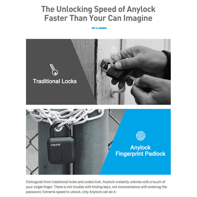 L3 Smart Keyless Fingerprint Padlock Waterproof Anti-Theft Door Security Lock Rechargeable Luggage Case Lock Tool